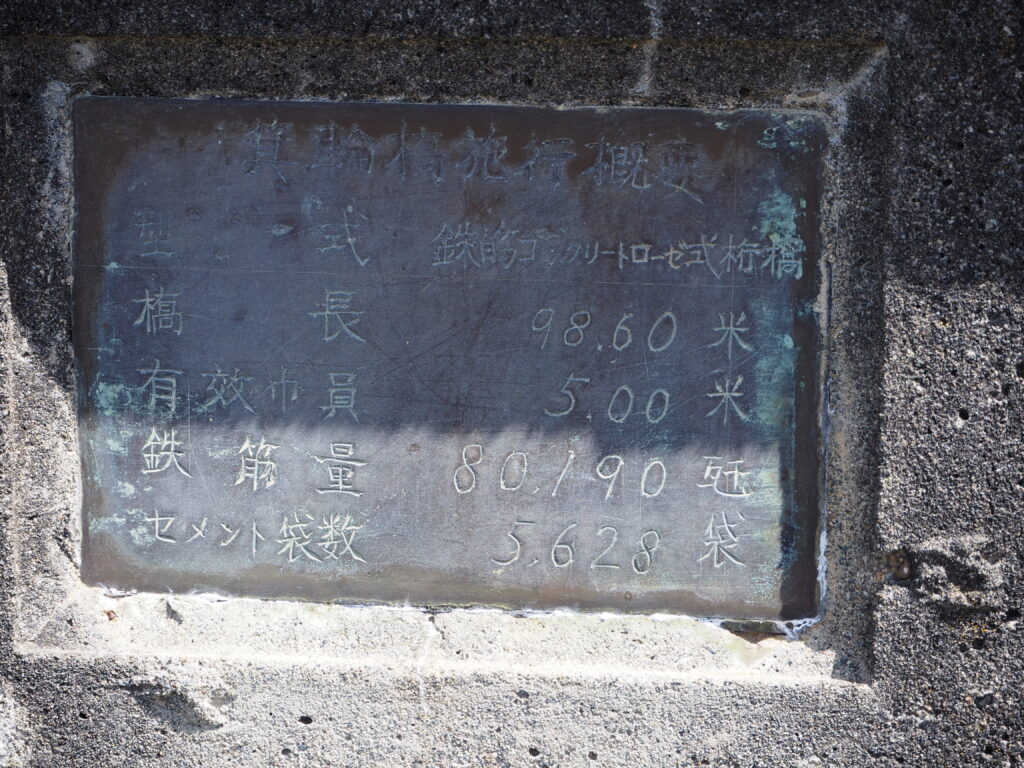 竣工:昭和29年(1954)10月 種類:3径間RCローゼ桁橋 橋長:98.6m