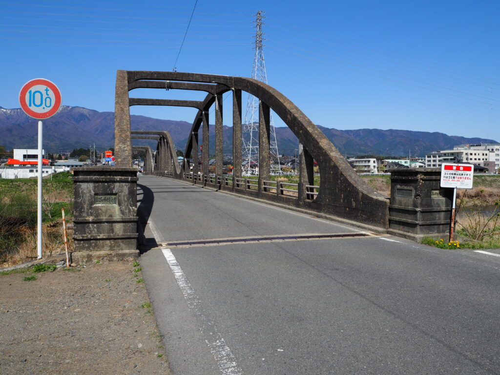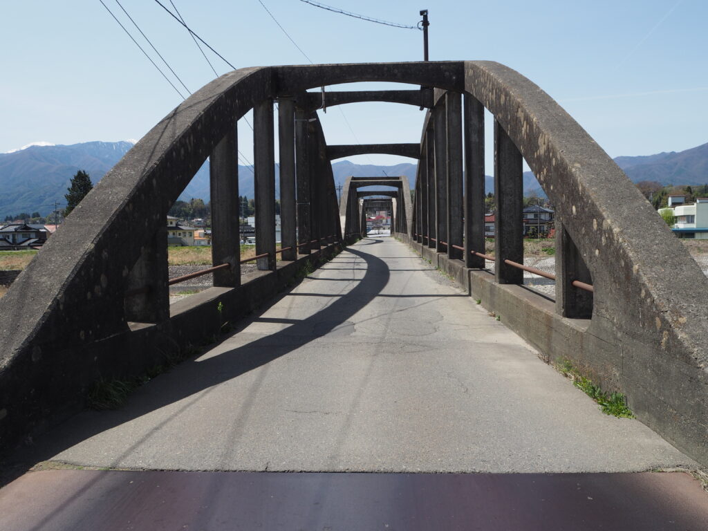 開発者の中島武(1906-1980)は札幌出身。北海道帝国大学土木工学科を卒業後、茨城県・岐阜県の道路技手を経て1933(昭和8)年長野県に赴任し、ここで鋼をコンクリートに替えた「鉄筋コンクリートローゼ桁」という新しい橋梁型式を開発しました。新潟へ転出するまでのわずか3年半あまりの間に、世界初といわれるコンクリートローゼ桁を7橋設計架設しています。中島が長野県在職中に開発実用化した影響からか、このタイプの橋は長野県に多くみられます。