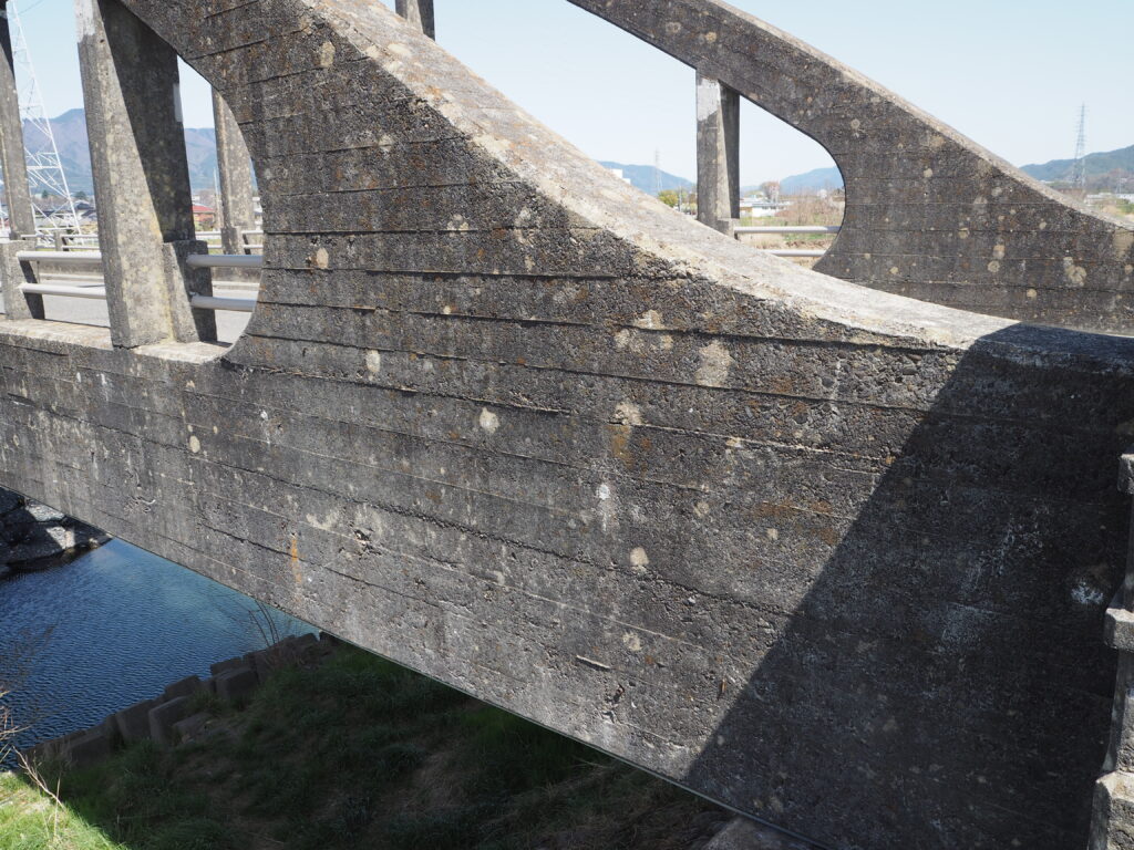 ローゼ桁橋(ローゼ橋)は、土木官僚の中島武によって開発された鉄筋コンクリート製のローゼ桁構造の橋です。桁とアーチ部材の双方で支えるアーチ構造の橋で、アーチ部材(上部)と補剛桁(下部)がほぼ同程度の部材厚をもつ点が外見上の特徴です。