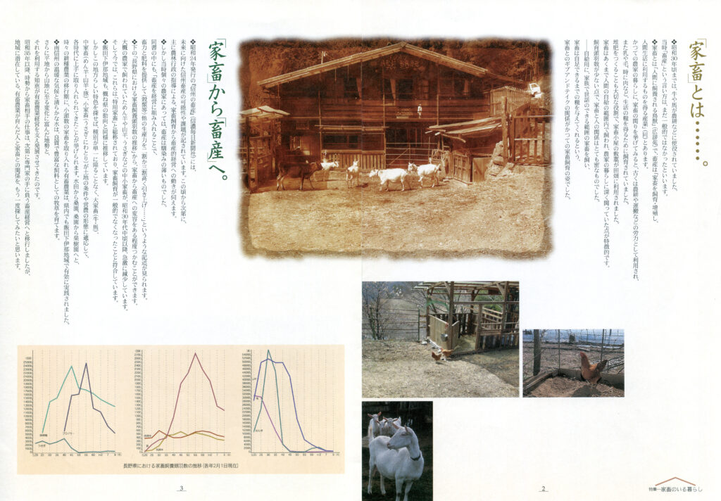 南信州広域連合が2002年4月に発行した『南信州広域だより』に、「家畜のいる暮らし」が特集記事として掲載されています。昔は農家などで飼われていた家畜は、いまはどうなっているのか。家畜のいる暮らしとは、どのようなものだったのか……。南信州に家畜を訪ね歩き、丹念に調べ上げています。